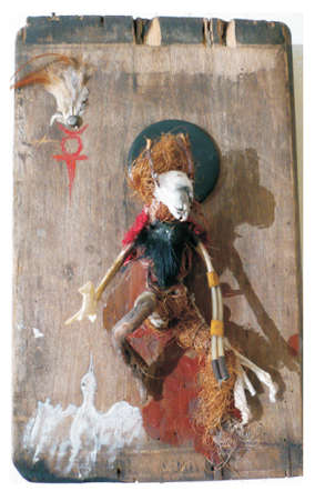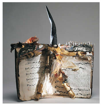 entouré par les livres-objets de Danielle-Marie CHANUT
